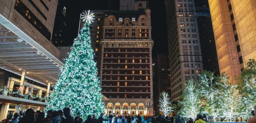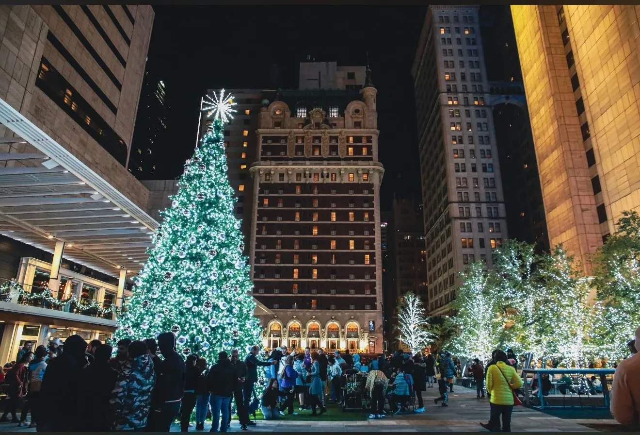 A festive pop-up with thousands of lights, a 50-foot Christmas tree, themed cocktails, bites, and special events like Sip & Wrap, Holiday Carol-oke, and live music. Open to all ages until 8 p.m.; 21+ thereafter.