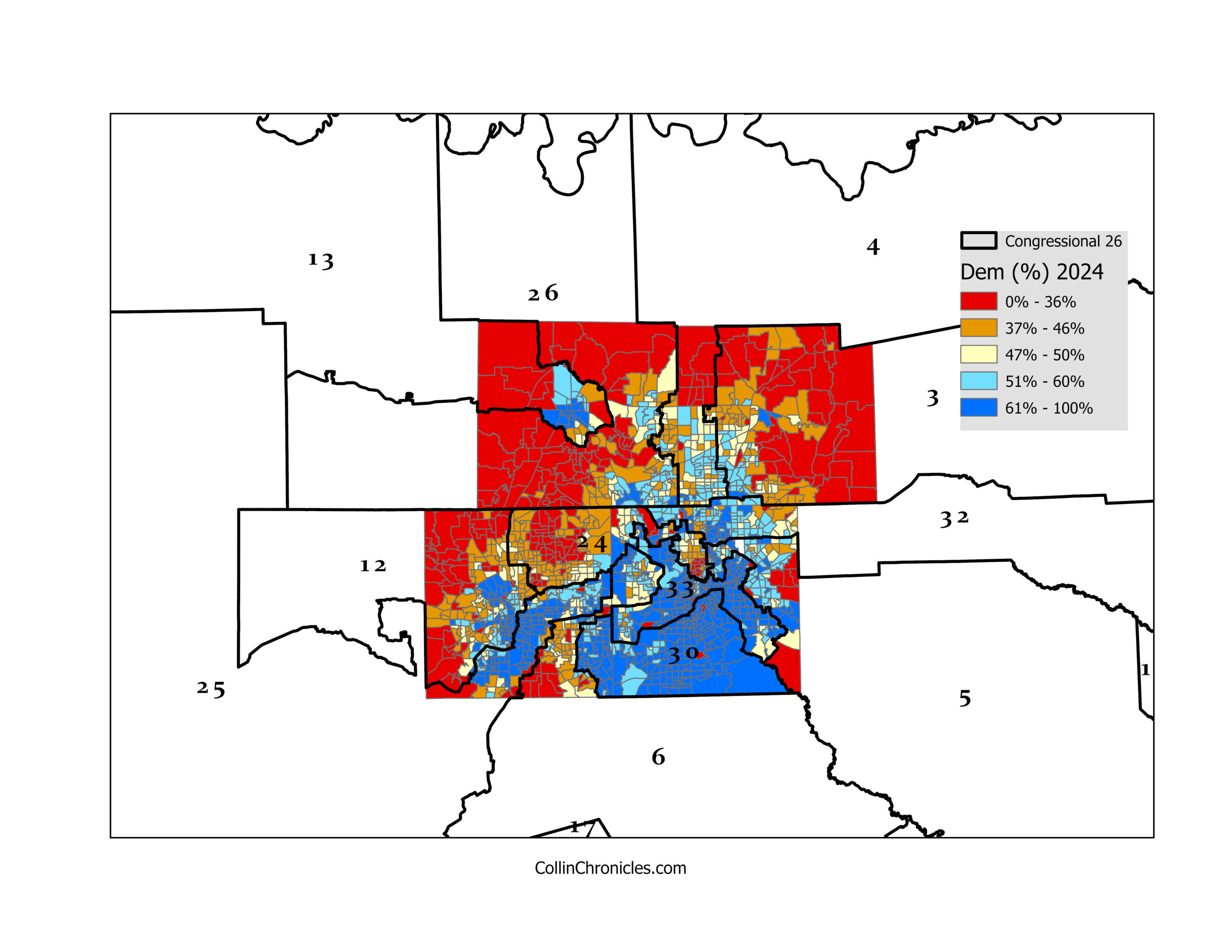 Critics argue that the configuration reflects modern gerrymandering at its most intricate, with boundaries zig-zagging around diverse communities and slicing through cities such as Dallas, Fort Worth, Arlington, Plano, and Frisco. Voting-rights advocates say the maps dilute cohesive urban voting blocs and weaken representation for rapidly growing minority populations across North Texas. Supporters, however, contend that the districts balance population shifts and maintain continuity within long-standing political regions.
